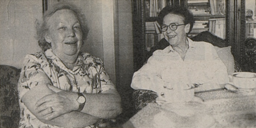 Věra Hájková (right) alongside Zdena Zajoncová, who also worked for the publication Vlasta. Photograph by Daniela Sýkorová, published in Alena Šloufová. „Dlouhá cesta za poznáním.” Vlasta 44: 28 (1990): 7